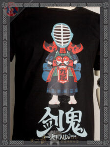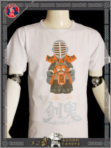sky-kendo Ken Oni & Kyubi Japanese Style T-shirt | 100% Cotton, Double-sided Black & White Print, Japanese Kendo Merch