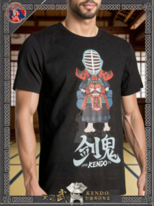 100% Pure Cotton Short Sleeve Double-sided T-shirt – Ken Oni & Kyubi, Japanese Kendo Themed Exclusive Design