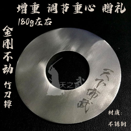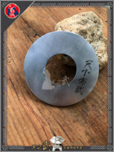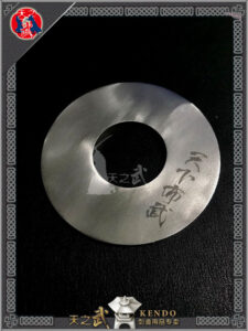 (不动明王剑镡:天之武招牌金属剑镡,经微型车床手工精修,并由光纤激光蚀刻出坚不可摧的不动明王像。)